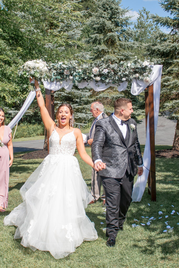 Once your officiant announces you and the cheers start, don’t rush out. Take your time walking down the aisle together. Soak in the smiles, the clapping, and the excitement from all your favourite people.